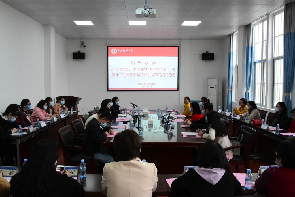 12月24日下午,广西壮族自治区直、中直驻桂单位档案工作第十二协作组成员到我校档案馆进行考察,在相思湖校区旧图书馆三楼会议室召开交流会。档案馆馆长李彩丽参加并发言,全区19所高职院校档案馆代表教师与相关工作人员与会。
